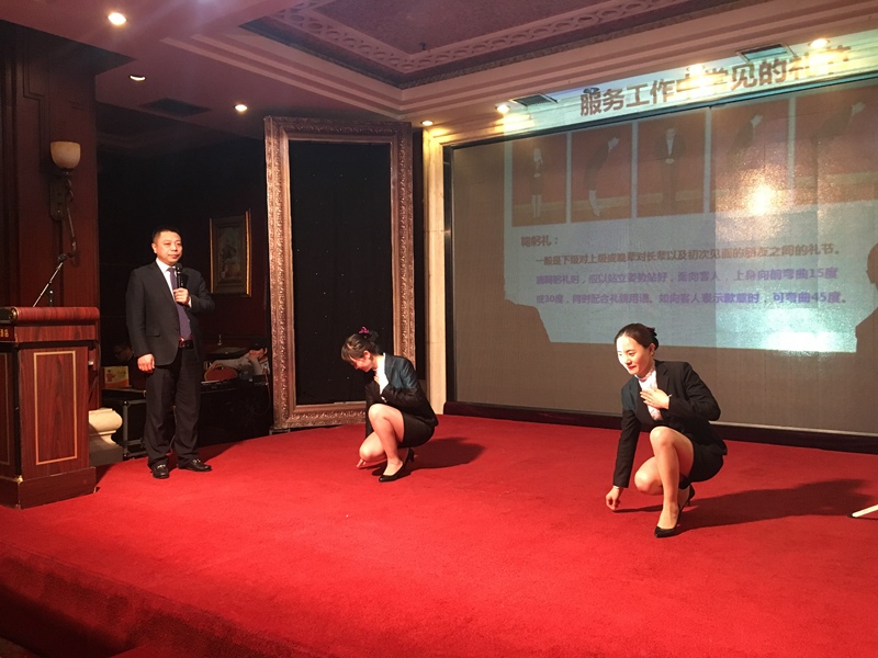 商務(wù)禮儀,通常指的是禮儀在商務(wù)行業(yè)之內(nèi)的具體運用,主要泛指商務(wù)人員在自己的工作崗位上所應(yīng)當(dāng)嚴格遵守的行為規(guī)范。學(xué)習(xí)商務(wù)禮儀除了有利于規(guī)范行為外,還有利于傳遞信息、增進感情,以及樹立形象,是個人和企業(yè)發(fā)展不可或缺的重要素質(zhì)。此次培訓(xùn),馮總從儀表著裝、交往舉止、溝通禮儀、電話禮儀、會議禮儀等方面入手,不僅詳細講解了職場服裝、發(fā)飾、領(lǐng)帶、著裝搭配以及基本的商務(wù)禮儀規(guī)范,同時還與酒店的兩位工作人員共同現(xiàn)場演示了商務(wù)活動中的站、坐、走、拾物等基本規(guī)范要領(lǐng),以及服務(wù)人員接待客人時的問好、致歉、指引等動作標(biāo)準(zhǔn),使大家能夠更直觀、準(zhǔn)確的掌握基本商務(wù)禮儀。此外,馮總還結(jié)合自身多年酒店工作經(jīng)驗和外出學(xué)習(xí)經(jīng)驗,以視頻、案例、情景模擬等方式,將實際工作中會出現(xiàn)的問題及行為標(biāo)準(zhǔn)進行了生動展示,有效提高了窗口單位人員的綜合素質(zhì)。