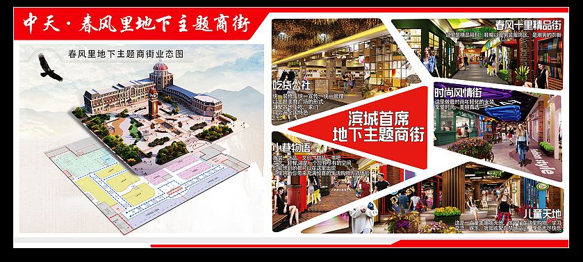 中天?春風(fēng)里地下主題商街以時(shí)尚、現(xiàn)代、高科技為標(biāo)配,引入新奇特商品,創(chuàng)造獨(dú)具想像力的購(gòu)物空間,經(jīng)營(yíng)面積1.1萬(wàn)平米,是集吃、喝、玩、樂(lè)、購(gòu)+高科技體驗(yàn)于一體的超大地下商業(yè)航母,分為“吃貨公社主題餐飲區(qū)、動(dòng)感地帶超炫體驗(yàn)區(qū)、時(shí)尚風(fēng)情日韓主題區(qū)、小巷物語(yǔ)閨蜜淘貨區(qū)和春風(fēng)十里精品服飾區(qū)”五大主題街區(qū)。吃貨公社主題餐飲區(qū)集中了世界各地風(fēng)味珍饈美食,是小資、文藝青年、情侶約會(huì)的天地,也是購(gòu)物之余的能量加油站;動(dòng)感地帶超炫體驗(yàn)區(qū)集最酷最炫最好玩的娛樂(lè)項(xiàng)目和設(shè)備設(shè)施,讓愛(ài)玩一族體驗(yàn)從未有過(guò)的超強(qiáng)動(dòng)感;時(shí)尚風(fēng)情日韓主題區(qū)將與日韓潮流同步,第一時(shí)間感受來(lái)自異國(guó)的潮流體驗(yàn);小巷物語(yǔ)閨蜜淘貨區(qū)是閨蜜飯后漫步的最佳街區(qū),日常生活所需的點(diǎn)點(diǎn)滴滴、扮美扮靚裝備,這里無(wú)所不有;春風(fēng)十里精品服飾區(qū)是高檔時(shí)尚人群喜愛(ài)之地,這里精品服飾薈萃,處處呈現(xiàn)有品位的時(shí)尚范。春風(fēng)里地下主題商街提供極具個(gè)性、時(shí)尚和新奇的商品,將成為70、80、90后的聚會(huì)游樂(lè)集散地。