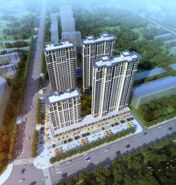 該地塊用地性質(zhì)為居住用地、商業(yè)服務(wù)業(yè)設(shè)施用地,用地面積:42490.9平方米,總建筑面積:91297.45平方米,其中住宅建筑面積為69489.92平方米,商業(yè)建筑面積為6810.74平方米。南北兩排住宅建筑與沿街商業(yè)圍合形成中心景觀區(qū)域,既滿足用戶需要又提升商業(yè)價(jià)值。另外還設(shè)計(jì)了物業(yè)配套建筑和文化活動(dòng)中心,物業(yè)建筑面積為300平方米,不僅為用戶提供了更加方便快捷的服務(wù),還為用戶配備了舒適的休閑娛樂(lè)活動(dòng)區(qū);小區(qū)道路等級(jí)分明,功能明確,沿街設(shè)置三個(gè)入口以及一個(gè)地下車庫(kù)入口,小區(qū)道路寬6米,機(jī)動(dòng)車位共665個(gè),其中地上停車位293個(gè),地下停車位372個(gè),為業(yè)主提供了足夠的停車空間;小區(qū)綠化率達(dá)到30%,讓業(yè)主置身園林體會(huì)“曲徑通幽處”、“小橋流水人家”的意境。