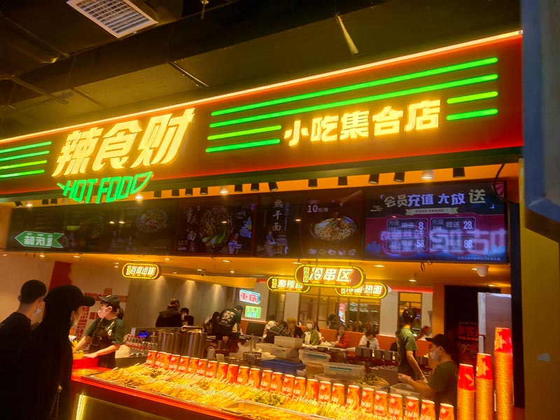 此次考察之行重點(diǎn)關(guān)注對象為特色美食街區(qū)及大連比較受歡迎的娛樂項(xiàng)目品類。作為大連乃至遼寧首屈一指的美食城運(yùn)營品牌——亞惠餐飲,幾乎在大連當(dāng)?shù)厮写笮蜕虉龆寄芤姷剿纳碛?。在大連經(jīng)營多年,掌握著相當(dāng)數(shù)量的餐飲商戶資源,其整體運(yùn)營模式非常成熟,以前店后廠的現(xiàn)場加工售賣的檔口形式呈現(xiàn),糅合自營與租賃雙模式共存,通過統(tǒng)一的收款及收餐為顧客提供標(biāo)準(zhǔn)化服務(wù),同時對所有自營員工及租賃商戶進(jìn)行監(jiān)督管理。