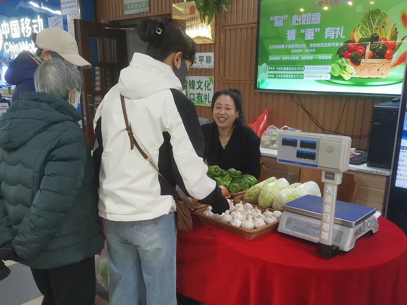 活動(dòng)規(guī)則簡(jiǎn)單有趣,顧客只需全場(chǎng)購(gòu)物累計(jì)消費(fèi)滿(mǎn)58元,即可憑消費(fèi)憑證參與活動(dòng),隨意選擇一種蔬果并估測(cè)其重量,如果與實(shí)際重量誤差在10%以?xún)?nèi),即可免費(fèi)獲得;如果誤差超出,則可得到鼓勵(lì)獎(jiǎng)——大蒜一頭。這種“贏也贏,輸也贏”的玩法,讓顧客們樂(lè)此不疲。