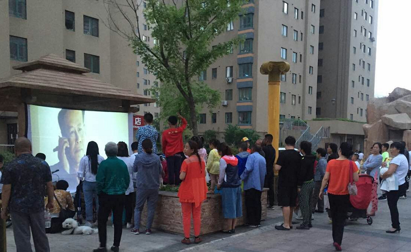 5月25日,在桃花源小區(qū)放映,由于場(chǎng)地選擇在外門市廣場(chǎng),吸引了周邊小區(qū)的居民,也讓很多路邊的行人頓足。大家一邊看電影,一邊議論,中天的業(yè)主有福氣,小區(qū)的文化多姿多彩。