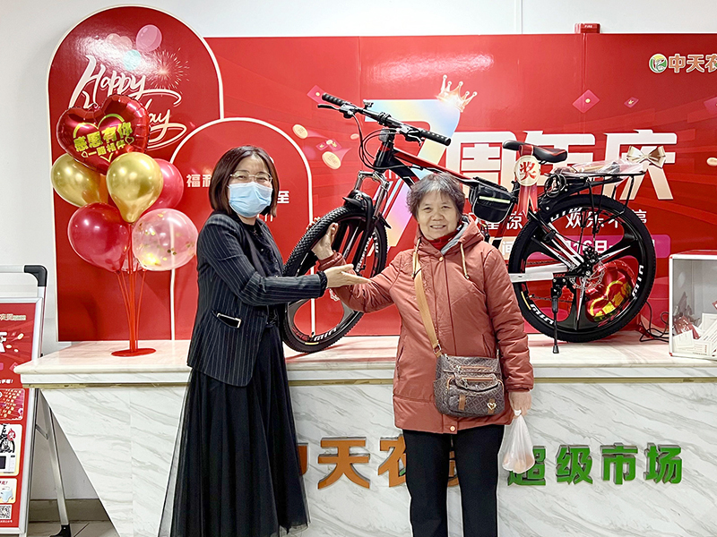 同時(shí)為感謝廣大顧客七年以來對(duì)中天農(nóng)貿(mào)的支持與厚愛,市場(chǎng)在慶典當(dāng)天投放了千枚鮮雞蛋,免費(fèi)領(lǐng),共慶生,傾情回饋七年的相伴,最后的重頭戲,是最令人期待的大抽獎(jiǎng)環(huán)節(jié),本次慶典活動(dòng)獎(jiǎng)品除了微波爐、電烤箱、料理機(jī)、電熱鍋等小家電以外,還特別增設(shè)了特等獎(jiǎng)——品牌變速山地車,面對(duì)豐厚的獎(jiǎng)品,熱情的顧客們都已按捺不住激動(dòng)的心情,迫不及待的想知道自己是不是幸運(yùn)兒,隨著主持人念出幸運(yùn)號(hào)碼,現(xiàn)場(chǎng)一片笑語歡聲,開獎(jiǎng)結(jié)束后,農(nóng)商公司總經(jīng)理孫晶為中獎(jiǎng)?lì)櫩皖C獎(jiǎng)并合影留念。