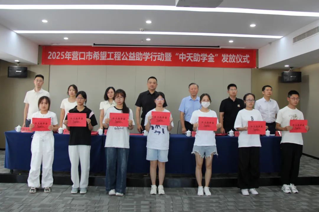 8月18日下午,2025年?duì)I口市希望工程公益助學(xué)行動(dòng)暨“中天助學(xué)金”發(fā)放儀式在中天集團(tuán)總部會(huì)議室舉行。營(yíng)口市團(tuán)市委書記劉慶男,中天企業(yè)集團(tuán)董事長(zhǎng)于寶權(quán)、總裁于洪波,營(yíng)口市團(tuán)市委副書記李瀚霖、曹午陽(yáng),營(yíng)口市教育局副局長(zhǎng)關(guān)雪嬌,營(yíng)口市慈善總會(huì)副會(huì)長(zhǎng)黃渤以及獲得資助的35名學(xué)生,出席了本次發(fā)放儀式。