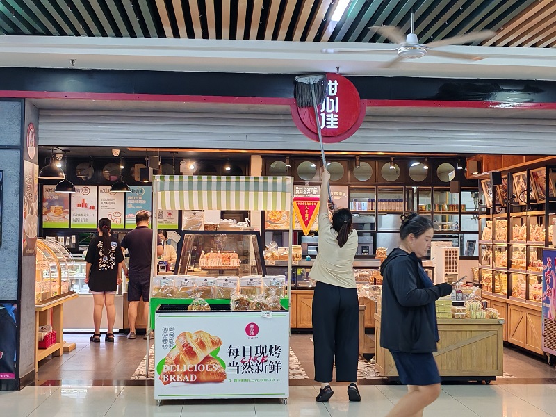 環(huán)境提升行動中,商戶們積極響應號召,自發(fā)對店鋪門頭、玻璃櫥窗進行深度清潔,市場整體外觀煥然一新。物業(yè)團隊則利用夜間閉店時段,對天花板積塵、蛛網進行徹底清掃,進一步夯實衛(wèi)生基礎。此外,策劃推廣部精心拍攝新商戶入駐宣傳視頻,通過市場群、員工群聯(lián)動轉發(fā),顯著提升新商戶知名度,有效拉動客流與經營業(yè)績。