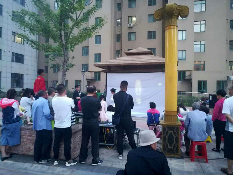 5月25日,在桃花源小區(qū)放映,由于場(chǎng)地選擇在外門市廣場(chǎng),吸引了周邊小區(qū)的居民,也讓很多路邊的行人頓足。大家一邊看電影,一邊議論,中天的業(yè)主有福氣,小區(qū)的文化多姿多彩。